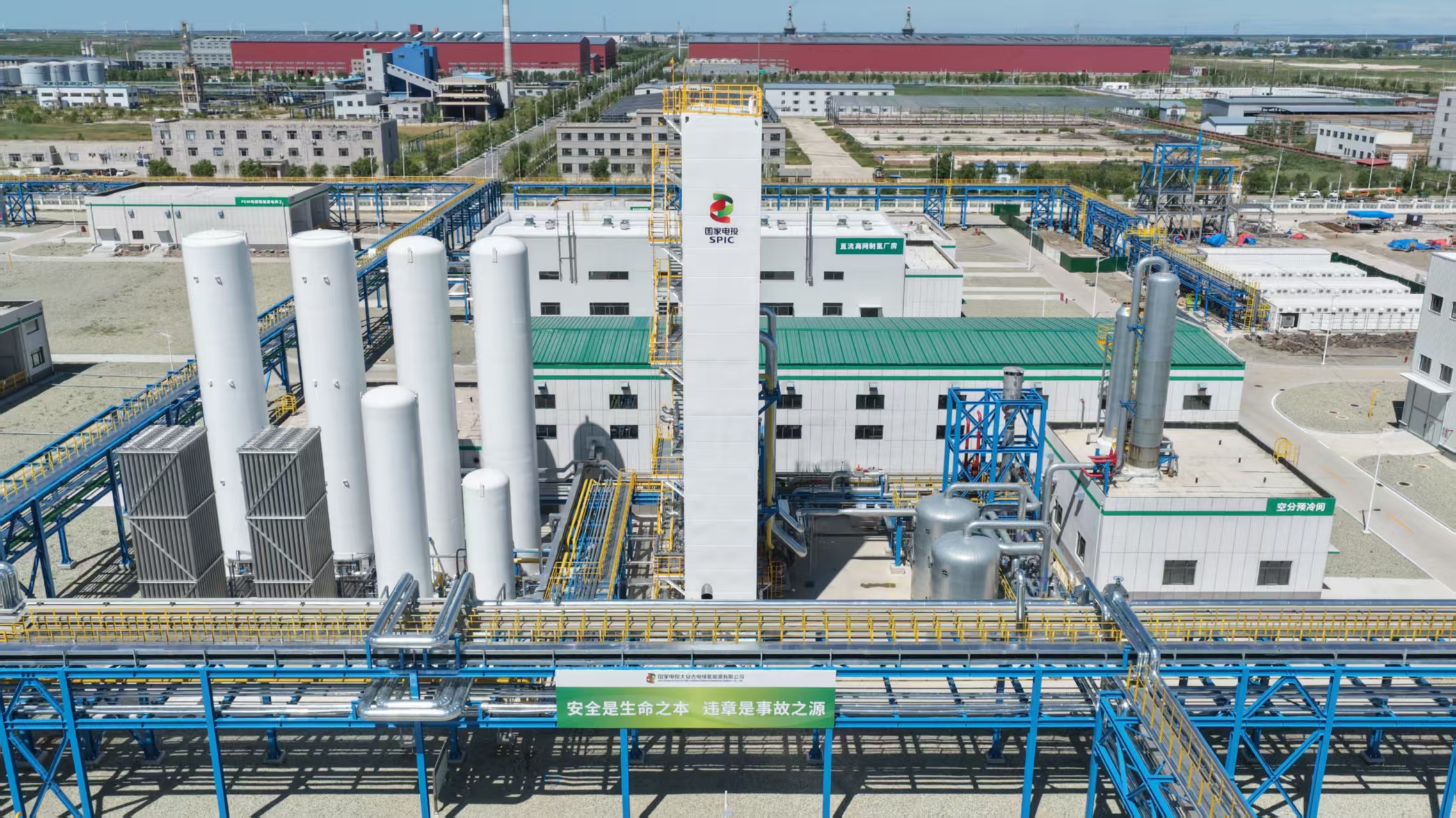 電投綠能投資建設(shè)的“氫洲·大安綠氨”項目,實現(xiàn)五項“全球之最”。圖為該項目空分裝置。