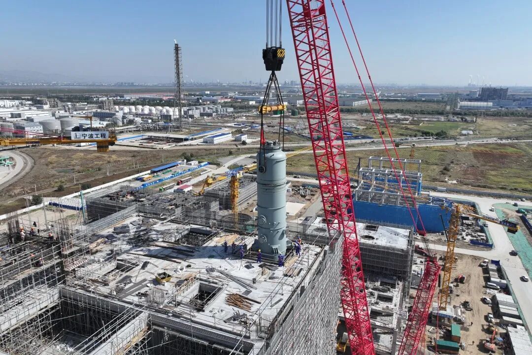 包頭煤制烯烴升級(jí)示范項(xiàng)目氣化爐吊裝作業(yè)施工現(xiàn)場(chǎng)