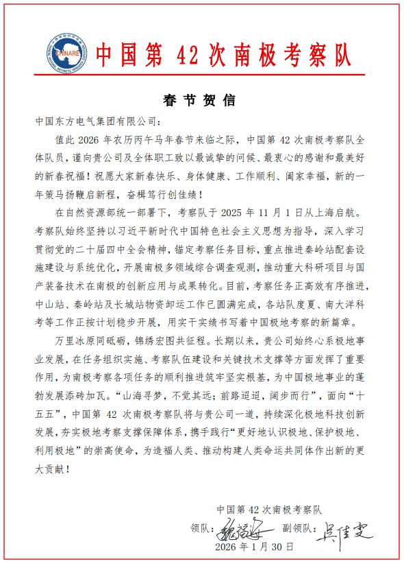 未來,東方電氣集團(tuán)將牢記“國(guó)之大者”,緊扣服務(wù)國(guó)家戰(zhàn)略需求,扎實(shí)做好相關(guān)工作,持續(xù)為我國(guó)極地科學(xué)考察事業(yè)貢獻(xiàn)“東方力量”。