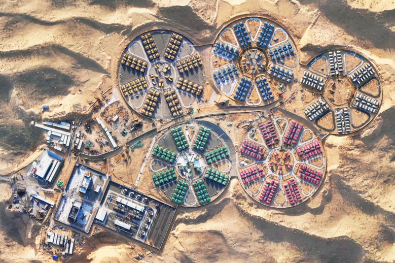 除了在“沙戈荒”的成功實(shí)踐,中國華電還建成了全國最大的灘涂光儲(chǔ)電站。該電站裝機(jī)容量為20萬千瓦/40萬千瓦時(shí),是“山東萊州大型鹽堿灘涂100萬千瓦光儲(chǔ)一體化項(xiàng)目”的配套工程,創(chuàng)新打造“鹽光互補(bǔ)”復(fù)合產(chǎn)業(yè)模式,為我國鹽堿地綜合利用與綠色能源發(fā)展樹立標(biāo)桿。