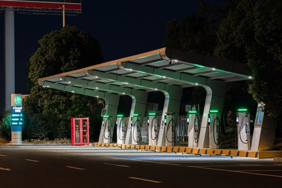 圖為高速公路服務區(qū)ChaoJi充電站。