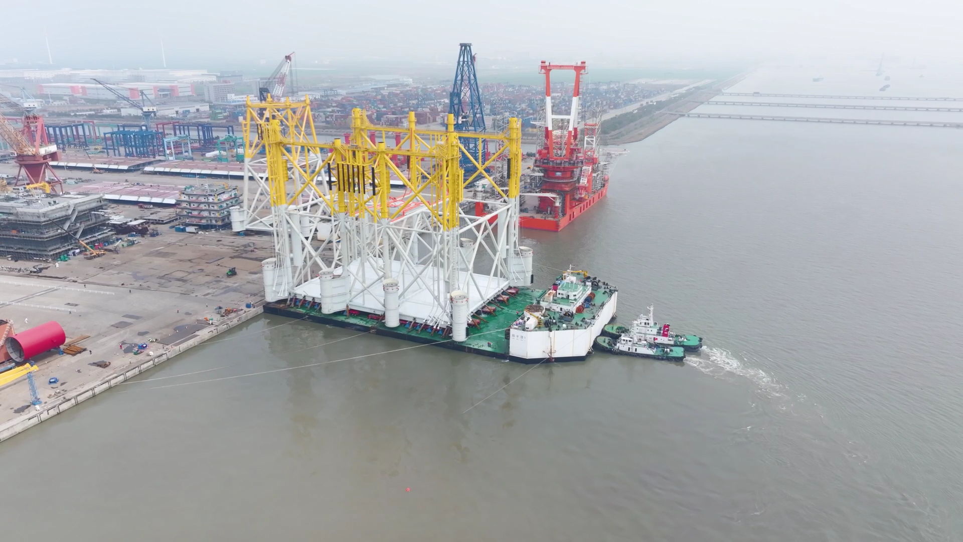 近日,全國(guó)首個(gè)海上風(fēng)電海陸一體柔性直流輸電工程——陽江三山島工程迎來關(guān)鍵節(jié)點(diǎn):重達(dá)1.36萬噸的海上換流站導(dǎo)管架,成功完成從陸地到運(yùn)輸船的轉(zhuǎn)運(yùn)作業(yè)。蔡思浩黃昕攝影報(bào)道