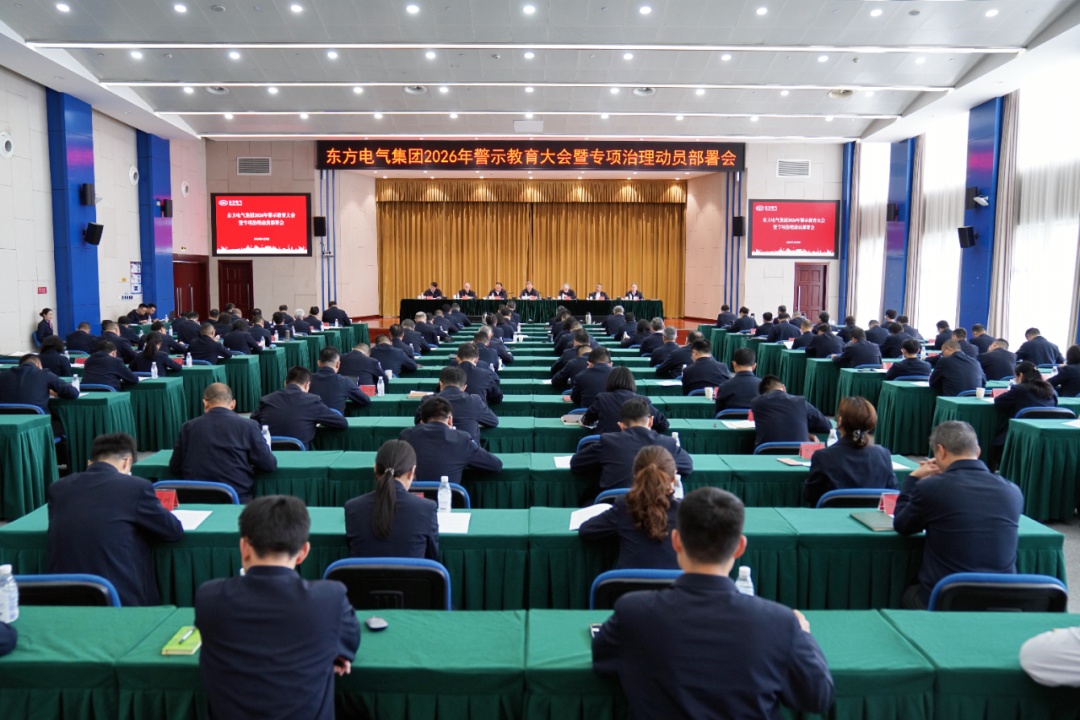 4月8日,東方電氣集團(tuán)召開2026年警示教育大會暨專項治理動員部署會,全面貫徹黨的二十屆四中全會、二十屆中央紀(jì)委五次全會精神,深入貫徹落實國務(wù)院國資委黨風(fēng)廉政建設(shè)和反腐敗工作部署,持續(xù)推動樹立和踐行正確政績觀學(xué)習(xí)教育,開展警示教育,深化專項治理,持之以恒推進(jìn)全面從嚴(yán)治黨。集團(tuán)公司領(lǐng)導(dǎo)羅乾宜、張彥軍、張少峰、孫國君、袁明剛、王軍、李建華出席會議。