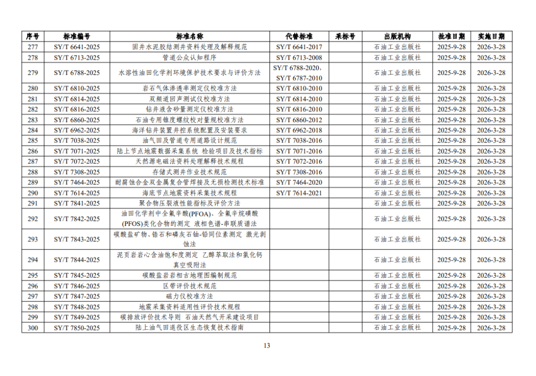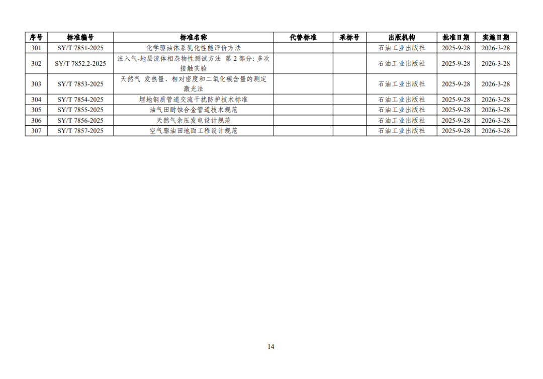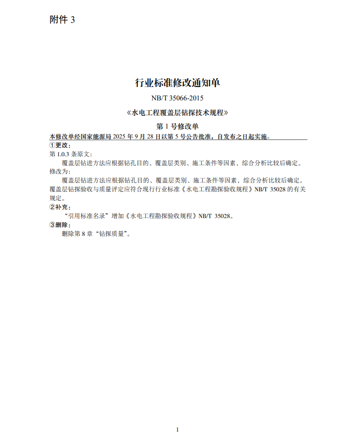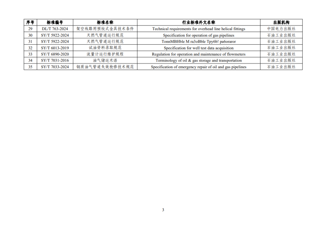 根據(jù)《中華人民共和國(guó)標(biāo)準(zhǔn)化法》《能源標(biāo)準(zhǔn)化管理辦法》,國(guó)家能源局批準(zhǔn)《注蒸汽用高溫起泡劑評(píng)價(jià)方法》等307項(xiàng)能源行業(yè)標(biāo)準(zhǔn)(附件1)、《Standard for quality of biomethane》等35項(xiàng)能源行業(yè)標(biāo)準(zhǔn)外文版(附件2)、《水電工程覆蓋層鉆探技術(shù)規(guī)程》等3項(xiàng)能源行業(yè)標(biāo)準(zhǔn)修改通知單(附件3),現(xiàn)予以發(fā)布。