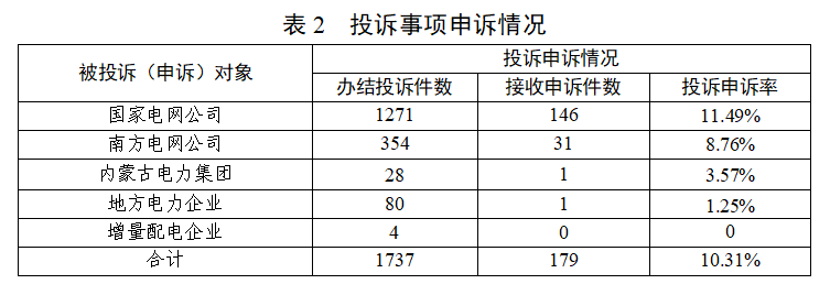 2026年2月,辦結(jié)投訴事項(xiàng)1737件(含上月結(jié)轉(zhuǎn)),熱線平臺(tái)接收申訴事項(xiàng)179件,投訴申訴率10.31%。從申訴內(nèi)容看,主要集中在用電報(bào)裝、電表計(jì)量、線路安全等方面(詳見(jiàn)圖2)。其中,涉及國(guó)家電網(wǎng)公司146件、南方電網(wǎng)公司31件、內(nèi)蒙古電力集團(tuán)1件、地方電力企業(yè)1件(詳見(jiàn)表2)。