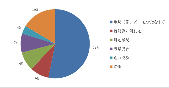2026年2月,熱線平臺(tái)接收舉報(bào)問(wèn)題線索79件。其中,承裝(修、試)電力設(shè)施許可42件、新能源并網(wǎng)發(fā)電7件、用電報(bào)裝7件、線路安全7件、電力交易3件、其他13件(詳見(jiàn)圖3)。舉報(bào)數(shù)量較多的省份為:廣東11件、浙江6件、河北5件、陜西5件、湖南4件。
