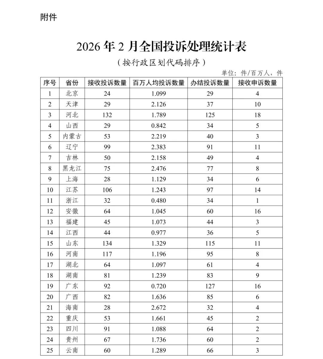 附件:2026年2月全國(guó)投訴處理統(tǒng)計(jì)表