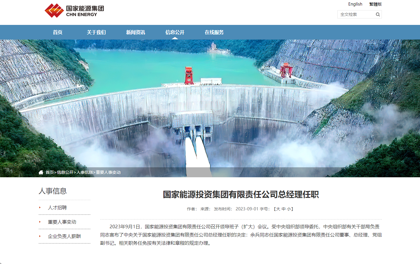 9月1日,國(guó)家能源投資集團(tuán)有限責(zé)任公司召開領(lǐng)導(dǎo)班子(擴(kuò)大)會(huì)議。受中央組織部領(lǐng)導(dǎo)委托,中央組織部有關(guān)干部局負(fù)責(zé)同志宣布了中央關(guān)于國(guó)家能源投資集團(tuán)有限責(zé)任公司總經(jīng)理任職的決定:余兵同志任國(guó)家能源投資集團(tuán)有限責(zé)任公司董事、總經(jīng)理、黨組副書記。相關(guān)職務(wù)任免按有關(guān)法律和章程的規(guī)定辦理。