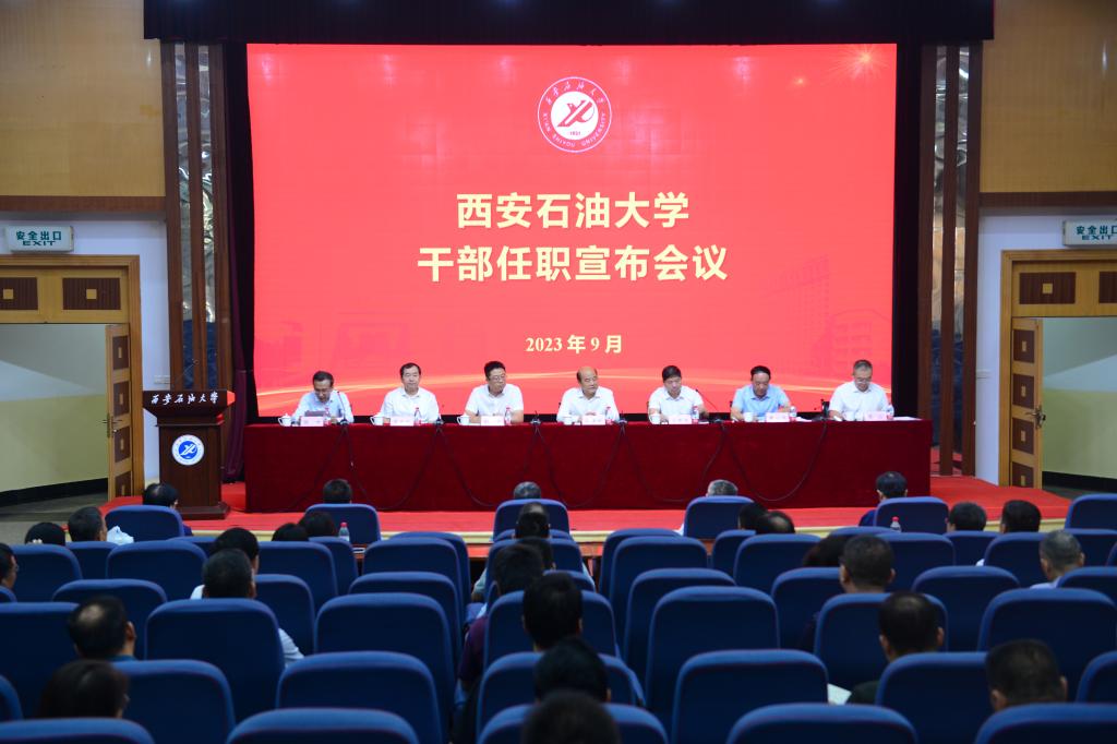 9月15日上午,西安石油大學(xué)召開(kāi)干部大會(huì),宣布省委關(guān)于學(xué)校干部任免的決定。陜西省委決定:常江同志任西安石油大學(xué)黨委委員、書(shū)記;張君濤同志任西安石油大學(xué)黨委委員,為西安石油大學(xué)副校長(zhǎng)人選。免去賽云秀同志西安石油大學(xué)黨委書(shū)記、委員職務(wù);免去李天太同志西安石油大學(xué)黨委副書(shū)記、委員職務(wù),不再擔(dān)任西安石油大學(xué)校長(zhǎng)。