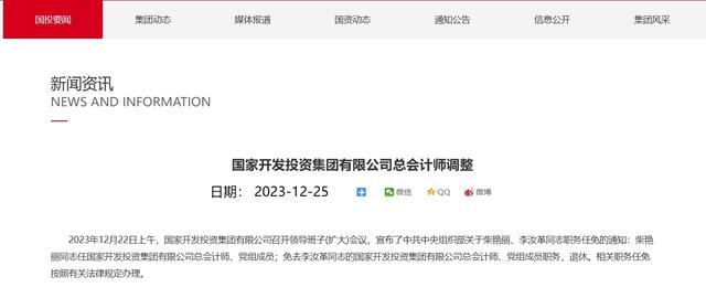 據(jù)國(guó)家開發(fā)投資集團(tuán)有限公司官網(wǎng)12月25日消息,12月22日上午,國(guó)家開發(fā)投資集團(tuán)有限公司召開領(lǐng)導(dǎo)班子(擴(kuò)大)會(huì)議,宣布了中共中央組織部關(guān)于柴艷麗、李汝革同志職務(wù)任免的通知:柴艷麗同志任國(guó)家開發(fā)投資集團(tuán)有限公司總會(huì)計(jì)師、黨組成員;免去李汝革同志的國(guó)家開發(fā)投資集團(tuán)有限公司總會(huì)計(jì)師、黨組成員職務(wù),退休。