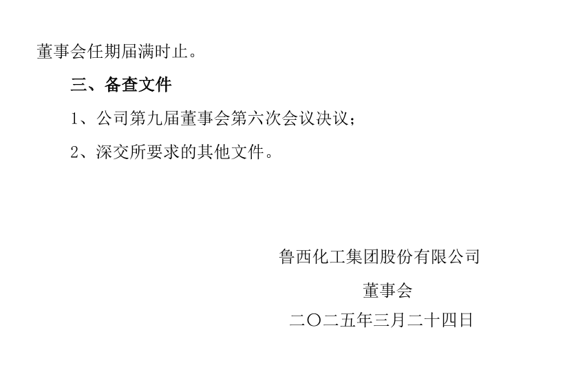 魯西化工發(fā)布公告稱(chēng),公司董事會(huì)3月24日收到王力剛先生遞交的書(shū)面辭職報(bào)告,王力剛先生因工作原因,申請(qǐng)辭去公司董事、董事長(zhǎng)及董事會(huì)專(zhuān)門(mén)委員會(huì)相關(guān)職務(wù),其辭職報(bào)告自送達(dá)董事會(huì)之日生效,王力剛先生辭職后不在公司及下屬子公司擔(dān)任任何職務(wù)。
