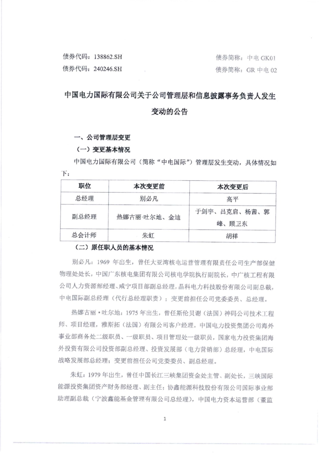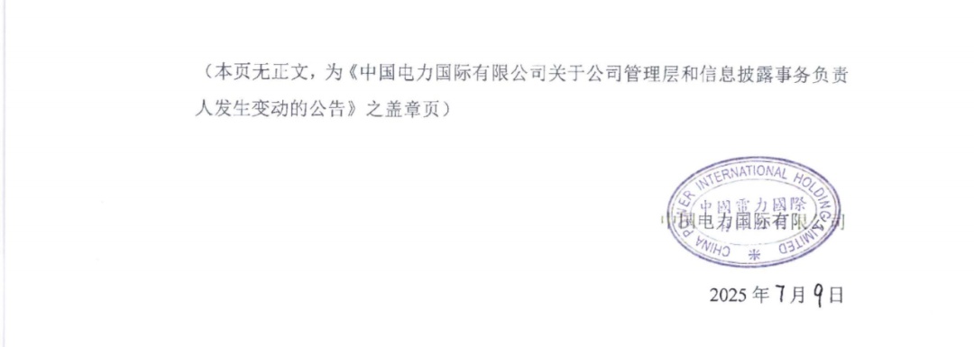 7月9日,中國(guó)電力國(guó)際有限公司(簡(jiǎn)稱(chēng):中電國(guó)際)發(fā)布公告,中電國(guó)際管理層發(fā)生變動(dòng),高平新任中電國(guó)際總經(jīng)理,于劍宇、呂克啟、楊茜、郭峰、顧衛(wèi)東新任中電國(guó)際副總經(jīng)理,胡祥新任中電國(guó)際總會(huì)計(jì)師。
