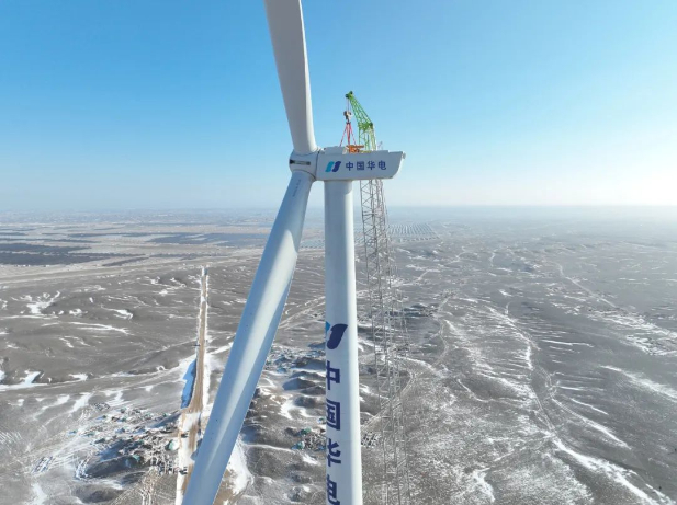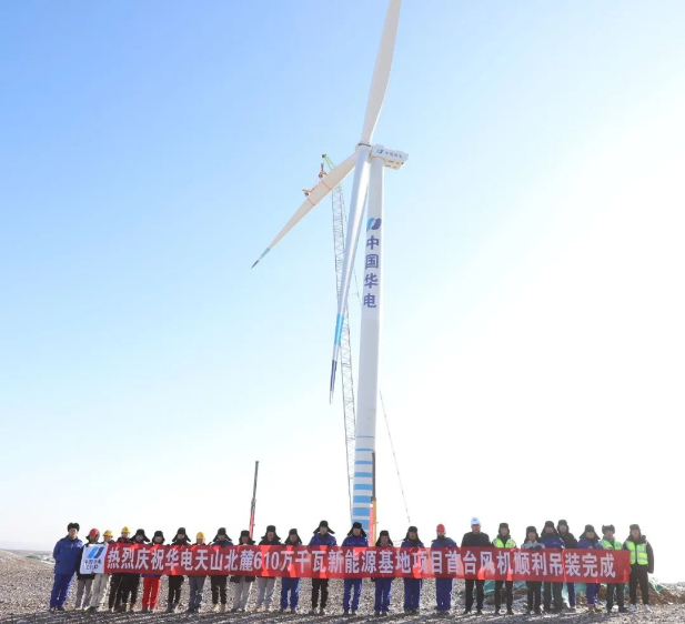 華電天山北麓基地610萬千瓦新能源項目首臺風(fēng)機(jī)成功吊裝