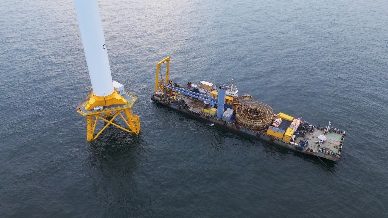 在海纜敷設(shè)環(huán)節(jié),因項(xiàng)目場(chǎng)址的淺埋基巖地質(zhì)特點(diǎn),導(dǎo)致海纜埋深不足成為成為敷設(shè)過(guò)程中的最大難題。為此,項(xiàng)目團(tuán)隊(duì)積極投入研發(fā)工作,創(chuàng)新研發(fā)了機(jī)械鉸刀式埋設(shè)犁,并且首創(chuàng)鉸刀成槽等施工工藝。通過(guò)運(yùn)用這些自主創(chuàng)新的工藝和設(shè)備,能夠順利破碎堅(jiān)硬的巖石,并將海纜深埋至巖石海床溝槽內(nèi),確保其在復(fù)雜的海洋環(huán)境中安全運(yùn)行。
