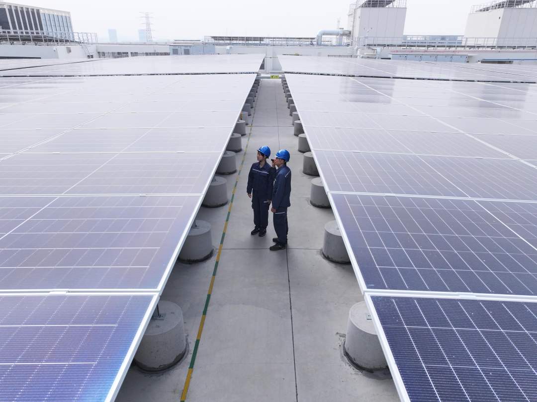 圖為南方電網(wǎng)工作人員在廣東川崎近零碳產(chǎn)業(yè)園檢查光伏、儲(chǔ)能設(shè)備運(yùn)行情況。劉酩詩(shī) 攝