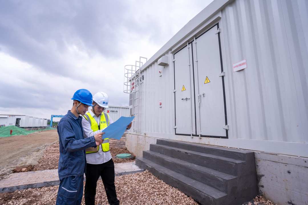圖為南方電網(wǎng)工作人員與儲(chǔ)能站工作人員共同開展現(xiàn)場(chǎng)驗(yàn)收工作。李杰 攝