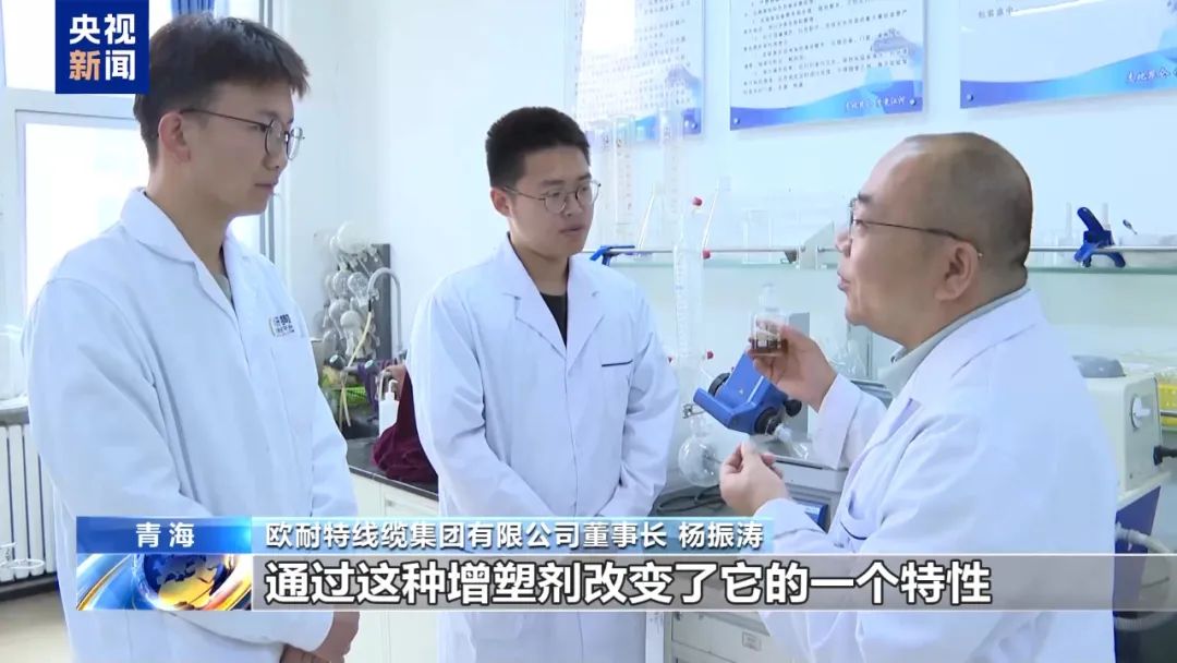歐耐特線纜集團(tuán)有限公司董事長(zhǎng) 楊振濤:零下30℃的天氣,電纜的施工就是一個(gè)難題,因?yàn)樘擦?。我們從大豆油、菜籽油里提煉出?lái)一種生物增塑劑,通過(guò)這種增塑劑改變了它的特性,增加了它的柔軟度,施工更容易更方便。