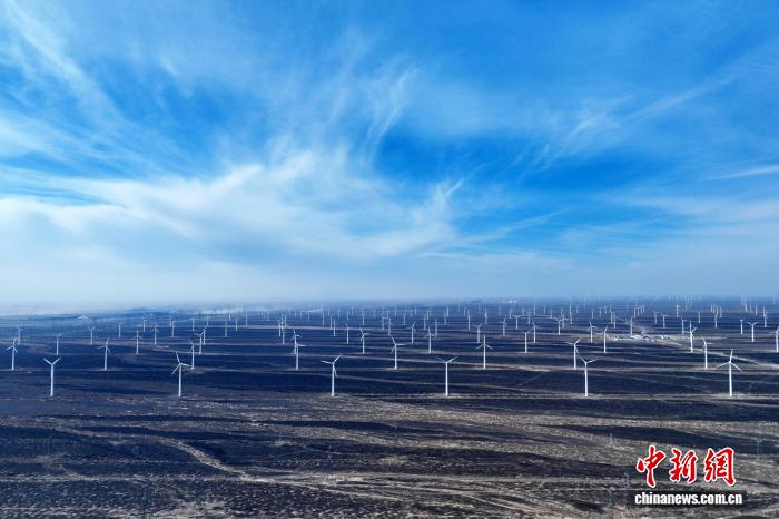 1月6日,航拍甘肅省酒泉市瓜州縣風(fēng)力發(fā)電項目。李亞龍攝