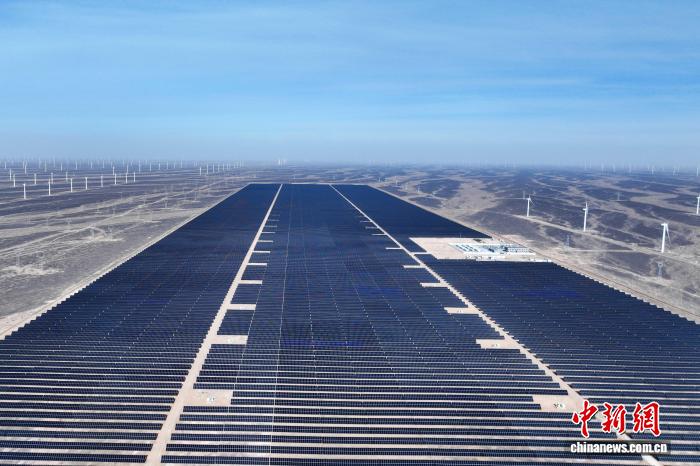 1月6日,航拍甘肅省酒泉市瓜州縣光伏發(fā)電項目。李亞龍攝