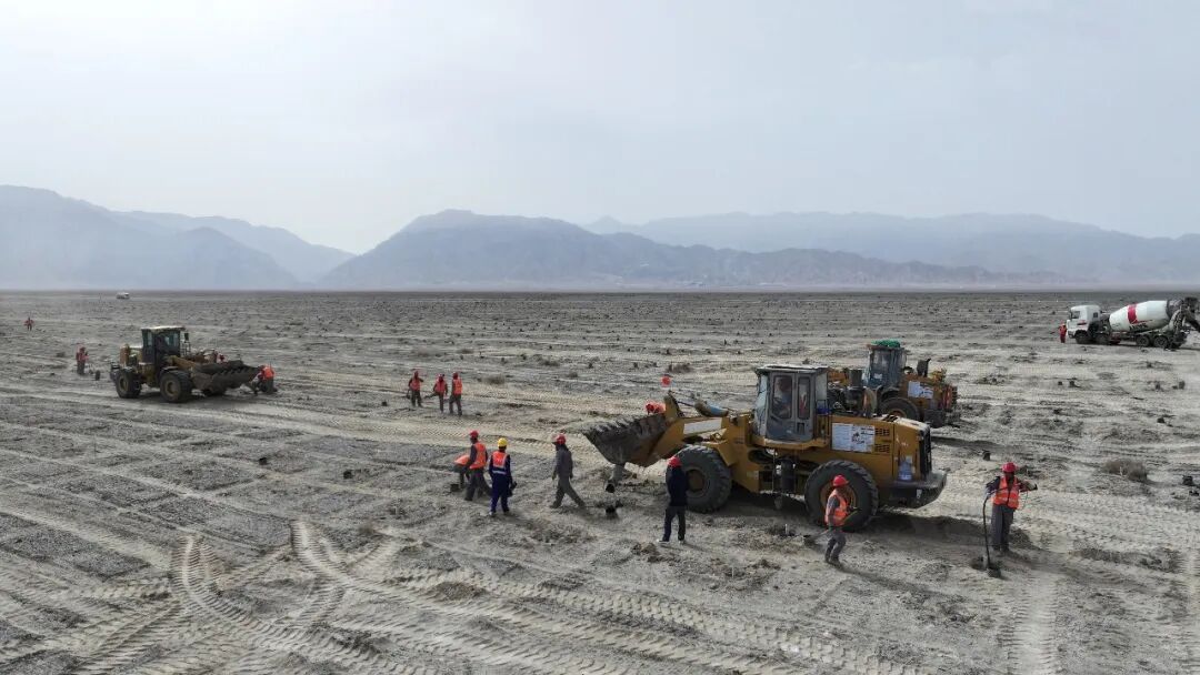 該項目位于新疆巴州若羌縣城以南27公里處,總用地面積達(dá)25903畝,項目總投資超26.5億元,總裝機容量100萬千瓦。中建三局標(biāo)段主體工程主要包含約30萬根微孔灌注樁、1.9萬組雙立柱固定式支架、100萬片光伏組件和1672臺逆變器等;以及場內(nèi)檢修道路、防洪堤等配套附屬工程。