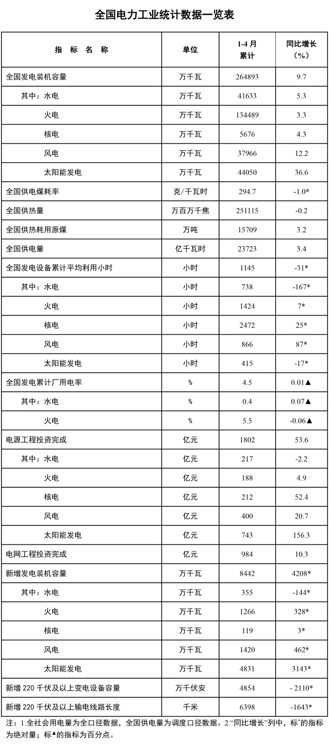 5月19日,國家能源局發(fā)布1-4月份全國電力工業(yè)統(tǒng)計數(shù)據(jù)。