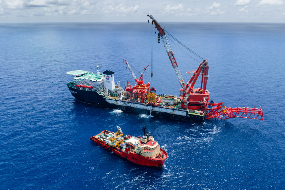 圖為“深海一號”二期海底管道終端安裝現(xiàn)場。(海洋石油工程股份有限公司供圖)