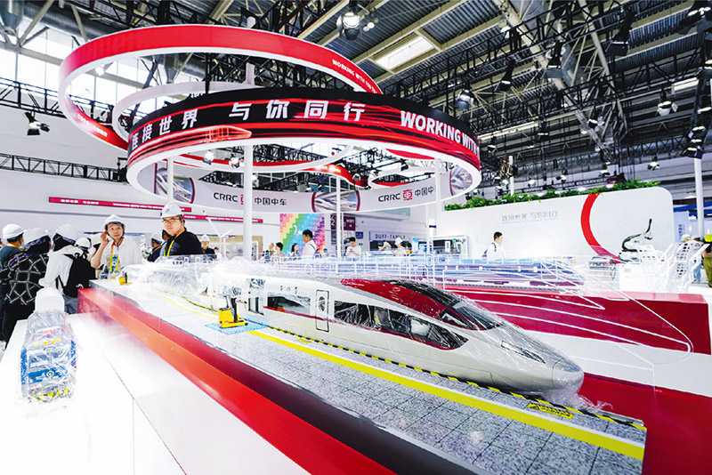 推動內外貿一體化發(fā)展能夠有效聯(lián)通兩種資源、兩個市場,有利于充分發(fā)揮我國擁有世界最完整產(chǎn)業(yè)體系的獨特優(yōu)勢,提升產(chǎn)業(yè)鏈供應鏈穩(wěn)定性。2025年7月16日至20日,以“鏈接世界共創(chuàng)未來”為主題的第三屆中國國際供應鏈促進博覽會在北京舉行。圖為7月14日在此次博覽會先進制造鏈展區(qū)拍攝的中國中車展位。新華社記者鞠煥宗/攝