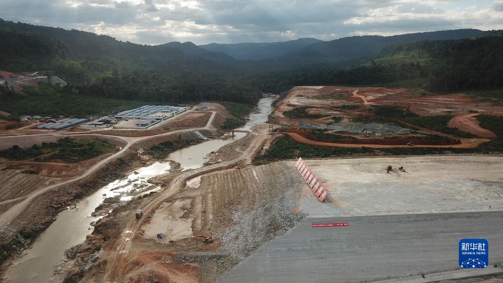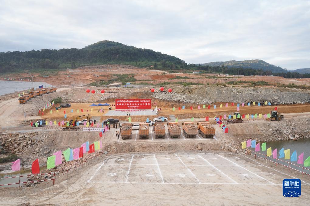 這是11月30日在柬埔寨戈公省特莫邦縣拍攝的上達岱水電站截流現(xiàn)場。新華社發(fā)(李萊攝)