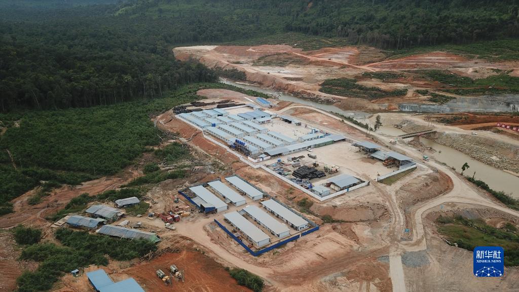 這是11月29日在柬埔寨戈公省特莫邦縣拍攝的上達岱水電站施工營地(無人機照片)。新華社發(fā)(廖泓清攝)
