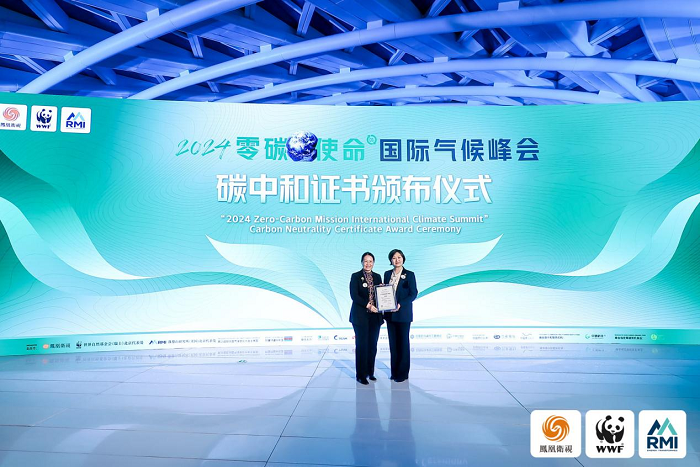在本屆峰會(huì)閉幕環(huán)節(jié)上,鳳凰衛(wèi)視品牌及公共事務(wù)副總裁兼品牌中心總經(jīng)理高雁、中碳科技(湖北)有限公司總經(jīng)理沈雙波出席了“2024 零碳使命國際氣候峰會(huì)”碳中和證書頒布儀式。中碳科技對(duì)此次峰會(huì)的碳中和進(jìn)行評(píng)估,并向此次會(huì)議頒發(fā)碳中和證書。經(jīng)過科學(xué)測(cè)算,本次峰會(huì)總碳排放額1.56噸。為了踐行真正的碳中和使命,鳳凰衛(wèi)視決定采購2噸的CCER進(jìn)行抵消。