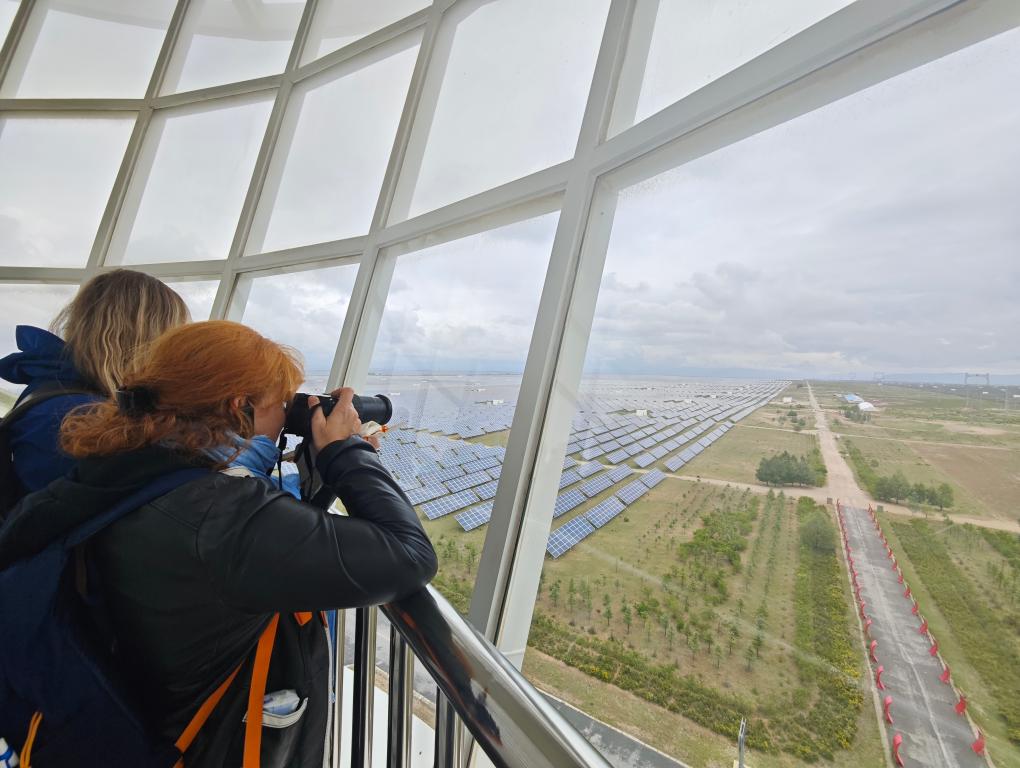 7月1日,外媒記者在位于塔拉灘的光伏園區(qū)拍攝。新華社記者陸君鈺攝