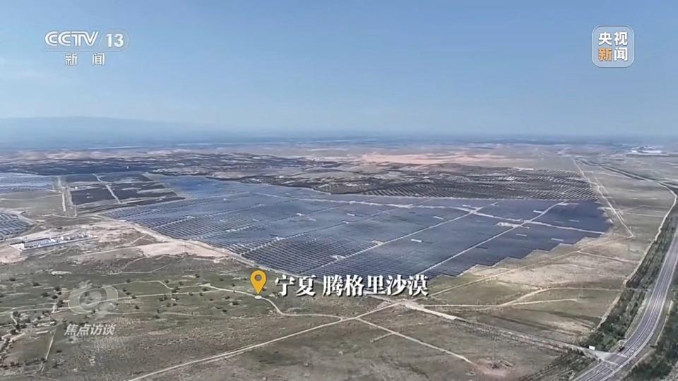 在國(guó)家“沙戈荒”基地重點(diǎn)項(xiàng)目——騰格里“沙戈荒”新能源基地,440余萬塊光伏板正在“全勤打卡”。這個(gè)新能源基地是國(guó)家“十四五”規(guī)劃綱要中明確提出的九大清潔能源基地之一,也是我國(guó)首批千萬千瓦級(jí)“沙戈荒”新能源基地。