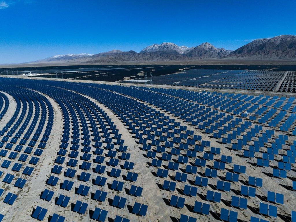 目前,塔拉灘已成為全球裝機(jī)容量最大的光伏發(fā)電園區(qū),建成面積350平方公里。高低起伏的光伏板拼接成“藍(lán)色海洋”,發(fā)出的綠電輸送至全國各地。