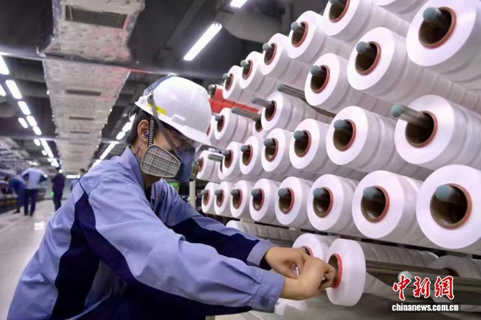 工人在車間內(nèi)操作白色化纖卷料。 (資料圖)銀川市委宣傳部供圖