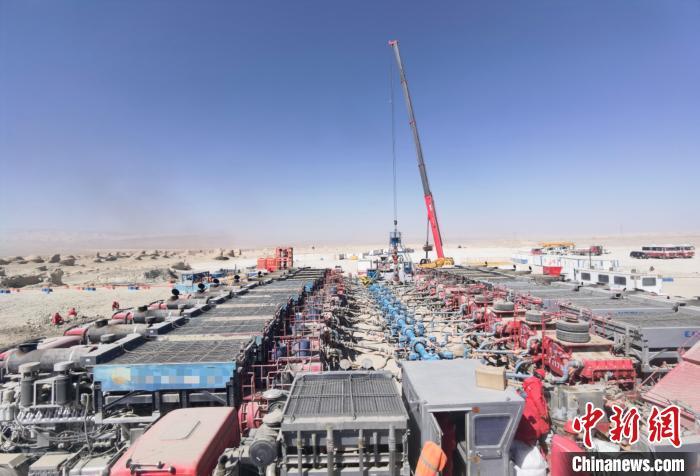 圖為溝探1井壓裂施工現(xiàn)場?;⒃?jǐn)z