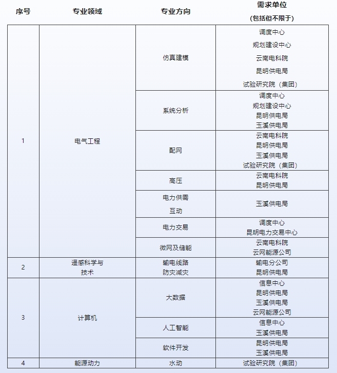 云南電網(wǎng)有限責(zé)任公司現(xiàn)面向海內(nèi)外引進(jìn)經(jīng)營(yíng)管理、科技創(chuàng)新、工程技術(shù)、自然科學(xué)等方面高層次人才。本次招聘需求領(lǐng)域具體如下表: