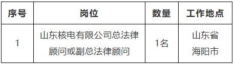 根據(jù)工作需要和相關(guān)制度規(guī)定,山東核電有限公司現(xiàn)就公司總法律顧問(wèn)崗位面向全社會(huì)進(jìn)行公開招聘。崗位如下:
