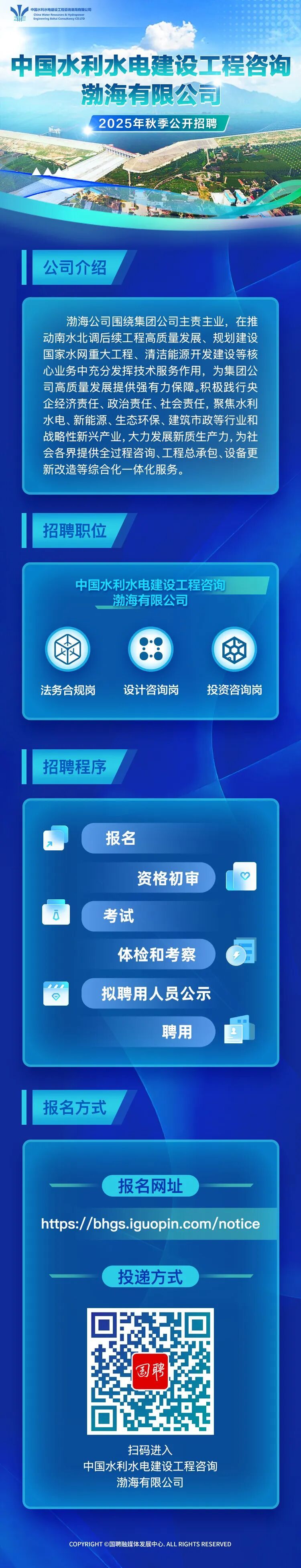 中國水利水電建設(shè)工程咨詢渤海有限公司2025年秋季公開招聘公告