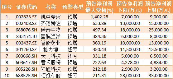 盈利增速方面,51只預喜股中共有10股業(yè)績翻倍,其中與能源產業(yè)鏈相關的凱中精密、齊翔騰達包攬榜單前二席位,預告凈利潤最大增幅分別達1402.28%、633.88%。