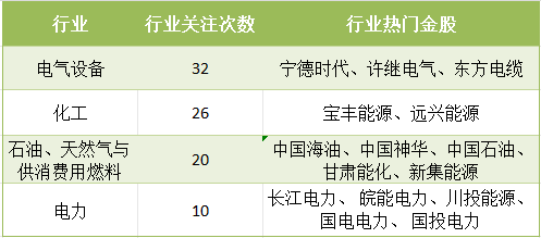 據Wind數據統計,截至7月4日,以寧德時代、許繼電氣、東方電纜等為代表的電氣設備行業(yè),以寶豐能源、遠興能源為代表的化工行業(yè),以“三桶油”為代表的油氣行業(yè)均獲得證券公司超20次推薦。與此同時,對于以中國廣核、華能水電、中國核電為代表的獨立電力生產商,市場熱情還在持續(xù)加碼。