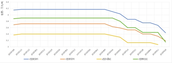 進(jìn)入6月,市場(chǎng)需求大幅萎縮,我國(guó)各品類太陽能級(jí)多晶硅市場(chǎng)價(jià)格繼續(xù)維持向下態(tài)勢(shì)。