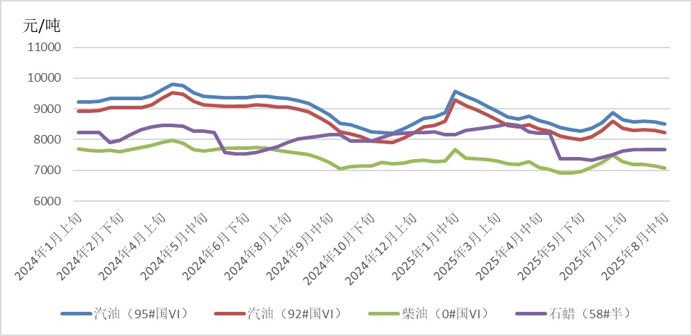 8月中旬,IEA上調(diào)全球石油供應過剩預期,美國能源信息署(EIA)預測2025年美國原油日產(chǎn)量將創(chuàng)1341萬桶紀錄,夏季駕駛旺季臨近尾聲原油需求下降預期增強,中美關稅暫停措施再延長90天等因素推動國際油價延續(xù)下跌態(tài)勢。然而,市場對美聯(lián)儲9月降息的預期增強,阿拉斯加美俄峰會并未取得實質(zhì)性進展,俄烏局勢不確定性推升地緣風險溢價,受上述因素影響,國際油價跌幅有所收窄。
