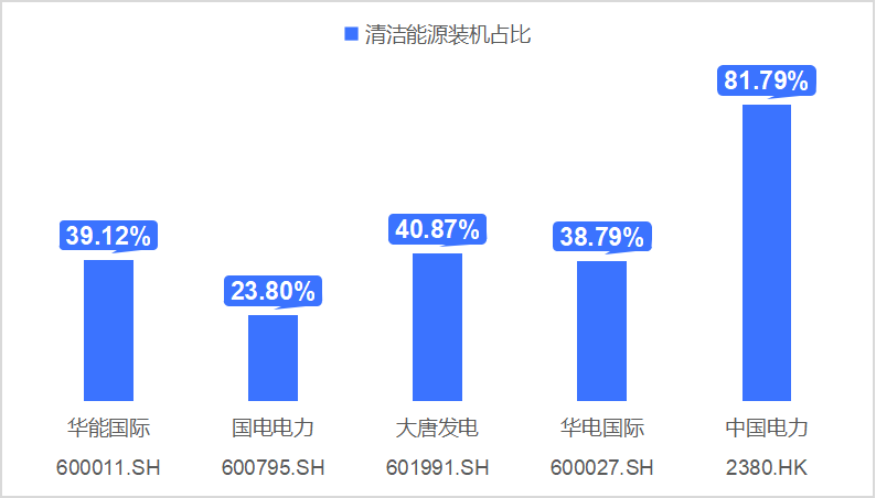 回顧五大電力上市公司的新能源“成績單”,上半年,清潔能源裝機(jī)占比均超過20%。
