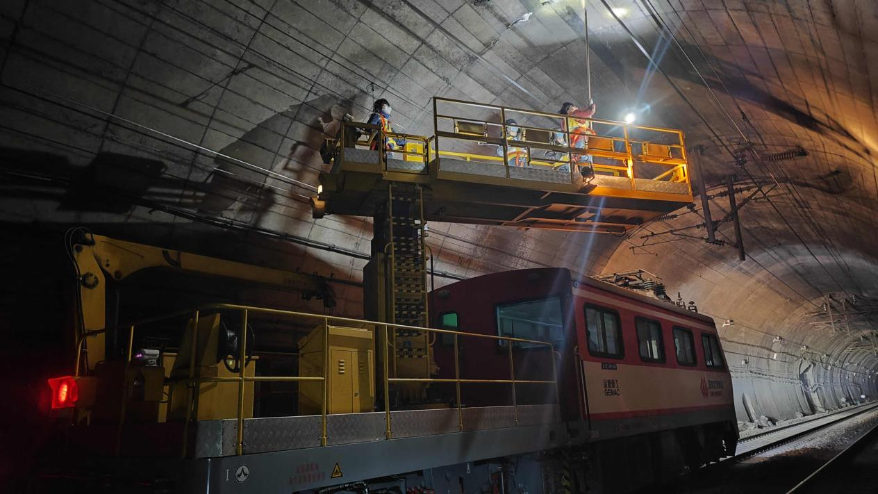 “今天的作業(yè)任務(wù)比較重,長梁山隧道病害比較多,走行距離也較長,在敲擊檢查時,大家必須認(rèn)真仔細(xì)地聽,從聲音中辨別是否存在空洞,絕對不可以馬虎。三天后就是龍年春節(jié)了,這是年前最后一個天窗,希望大家用今天的辛苦換來平安、祥和、愉快的春節(jié)?!本€橋檢修中心作業(yè)組長李英在出工前說。
