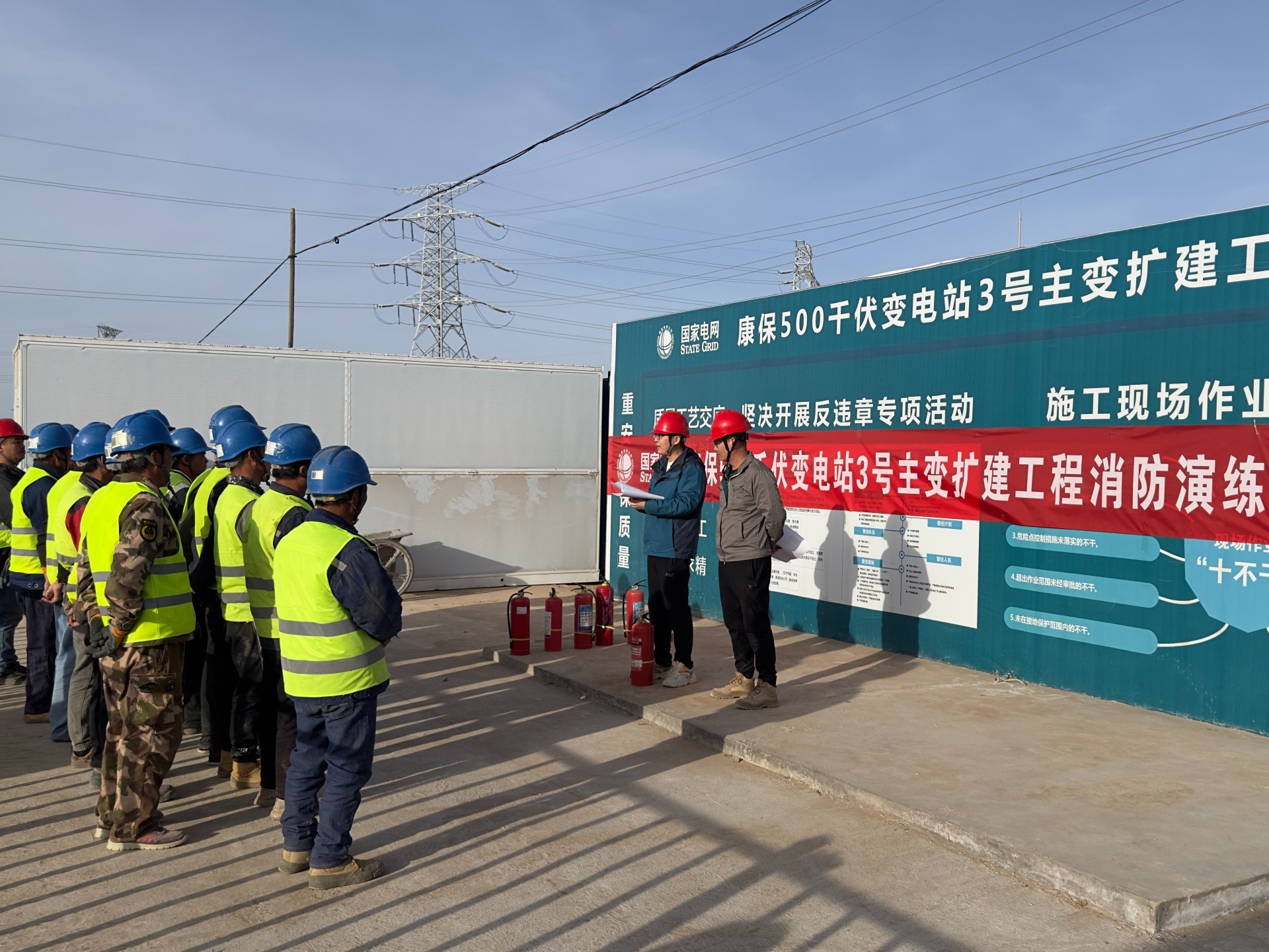 該公司負責建管的康保500千伏變電站3號主變擴建工程組織參建單位開展消防應急演練活動。張澤亮 攝
