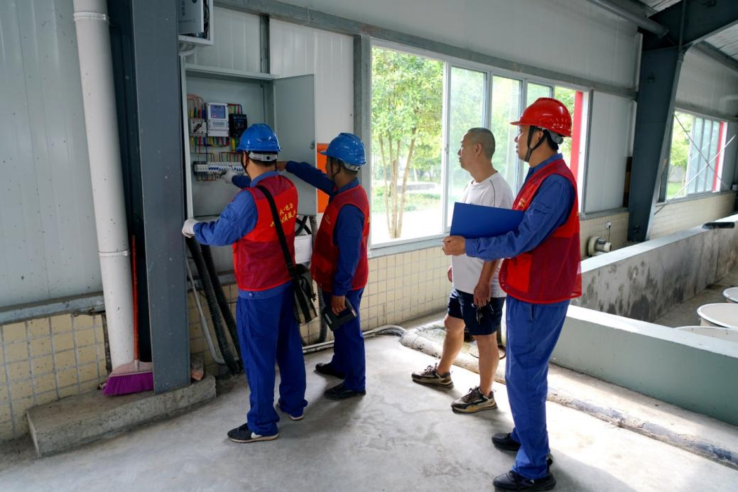 圖為義務(wù)為基地檢查魚池充氧配電設(shè)備