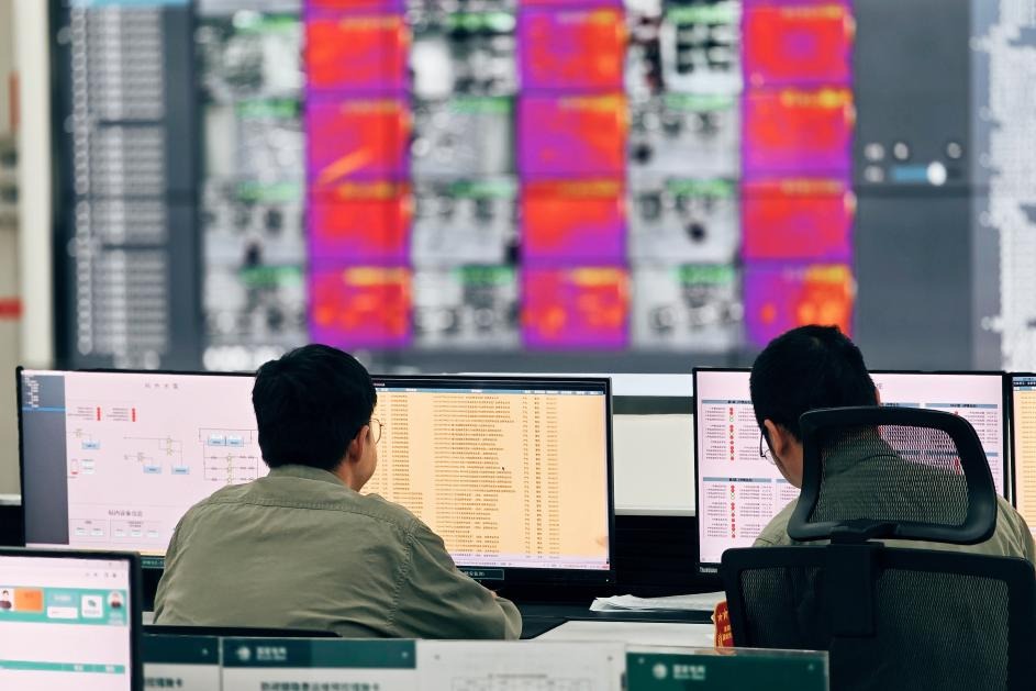 國(guó)網(wǎng)湖北直流公司特高壓武漢換流變電站運(yùn)維人員開(kāi)展年度檢修期間的報(bào)文監(jiān)測(cè)。歐陽(yáng)雷 攝