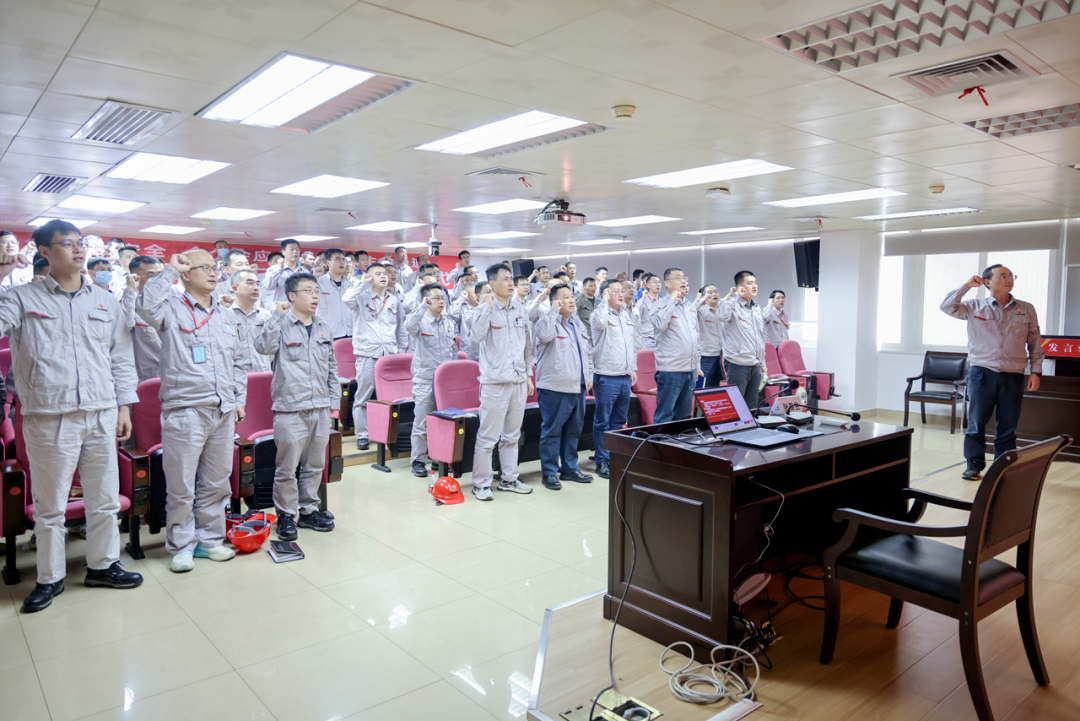 火電業(yè)務(wù)單位領(lǐng)導(dǎo)班子帶領(lǐng)全體參會人員進(jìn)行安全承諾宣誓。