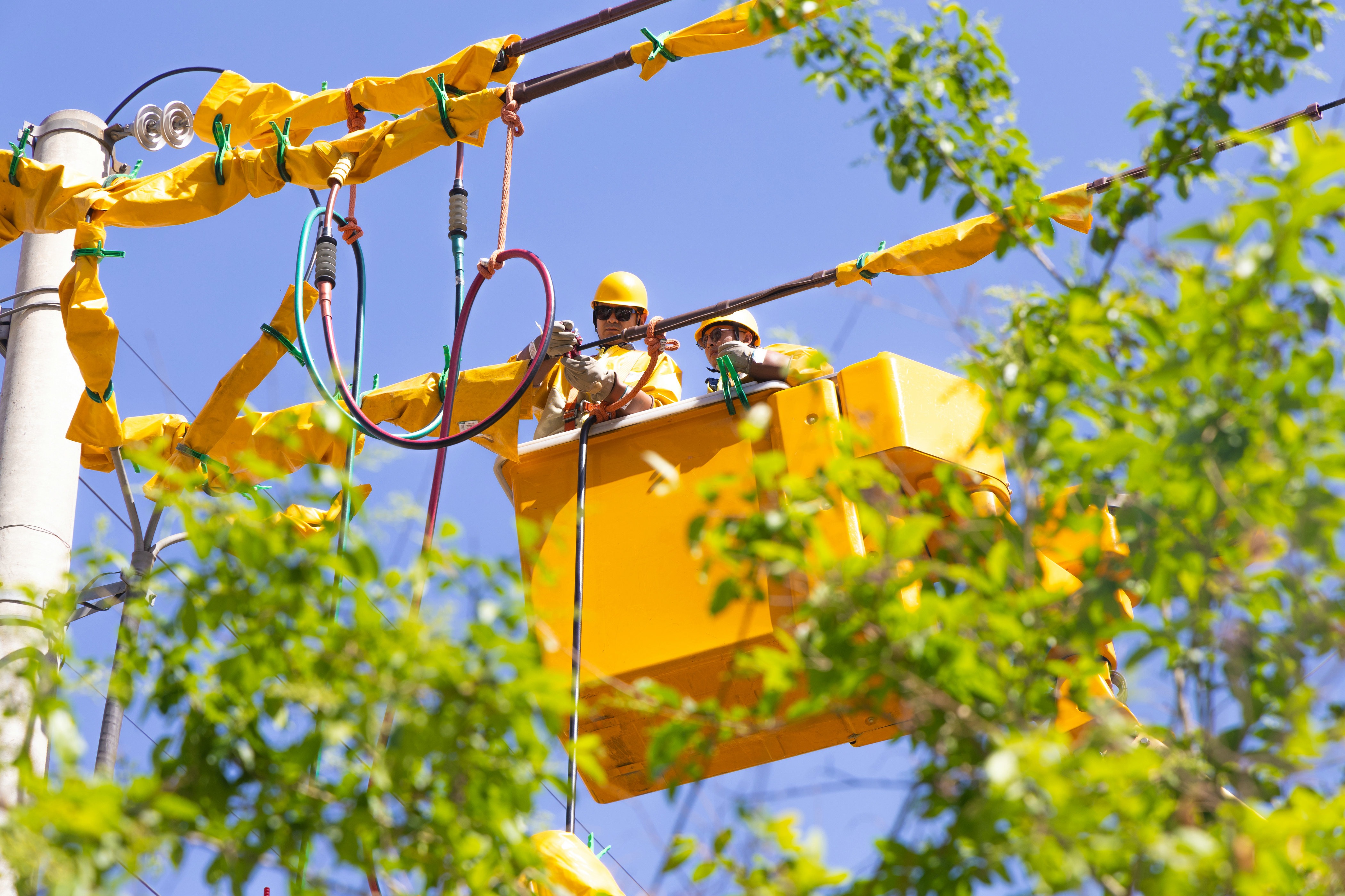 濟(jì)南供電公司員工正在開展帶電作業(yè)。?