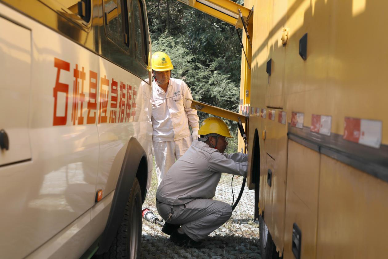 重慶石柱供電公司員工在巡視檢查發(fā)電車。(劉國政攝)